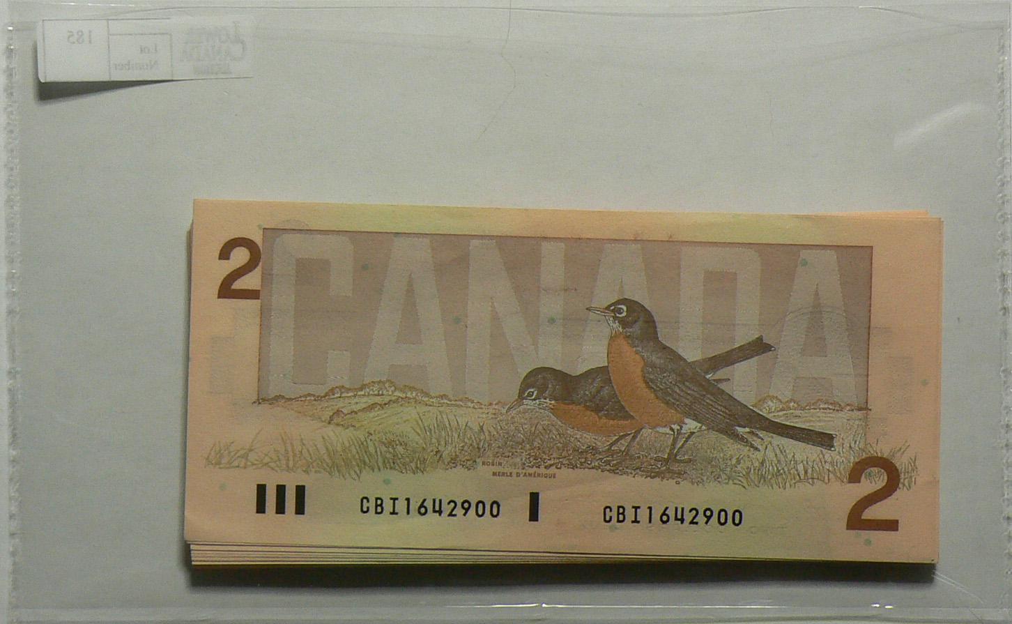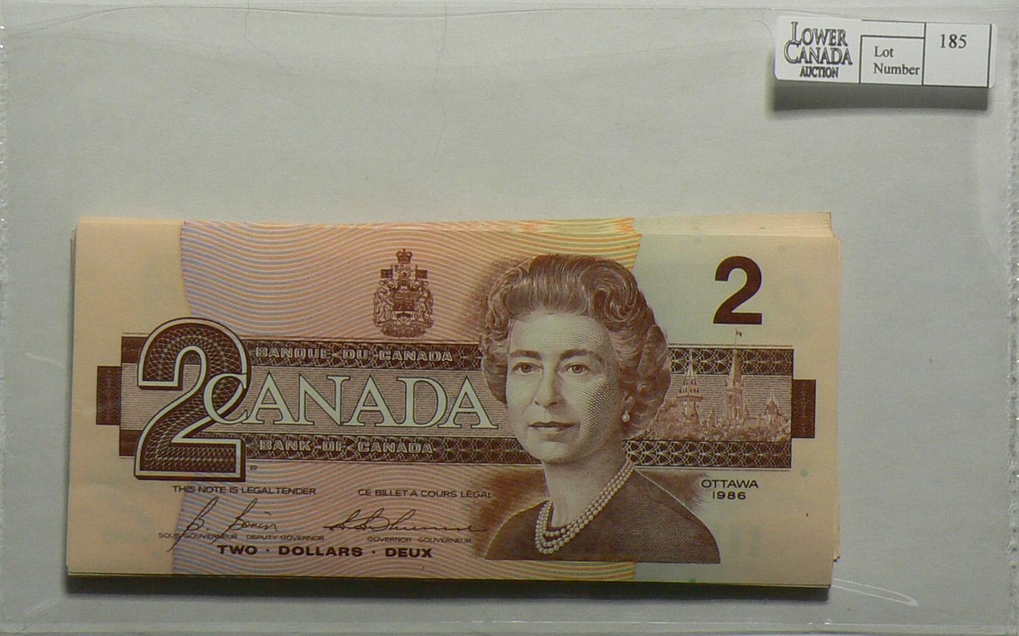 1986 Two Dollars Bundle, BC-55c, UNC, Bonin Thiessen, serial CBI1642855 to CBI1642900. Lot of 46 notes.