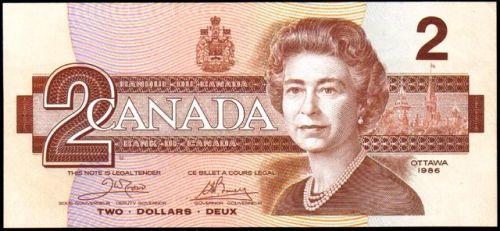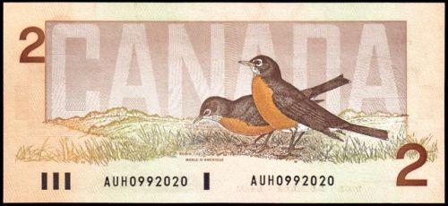 1986 Two Dollars Crow-Bouey, BC-55a serial number AUH0992020, Uncirculated