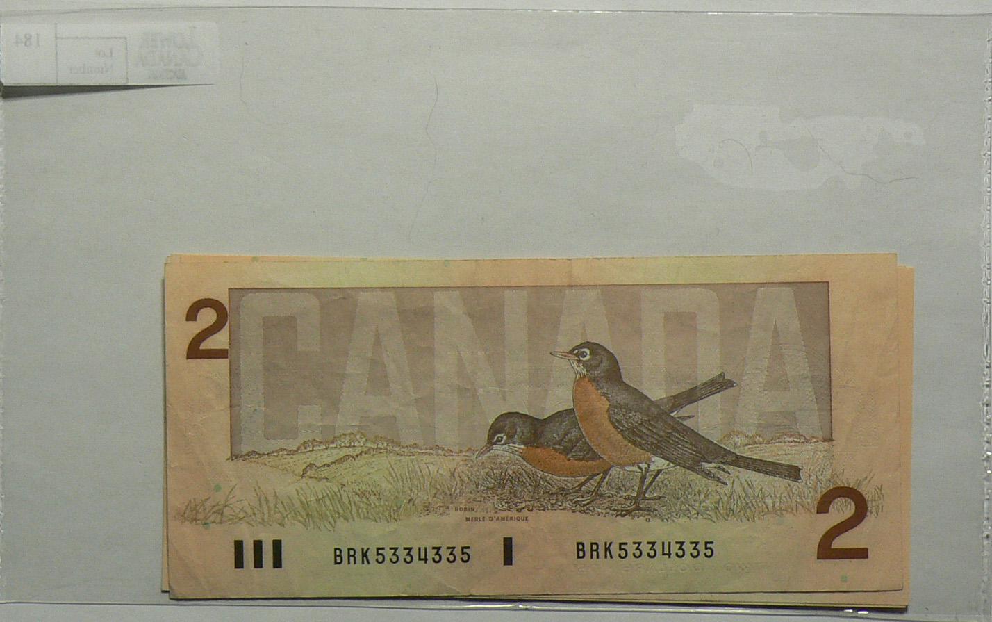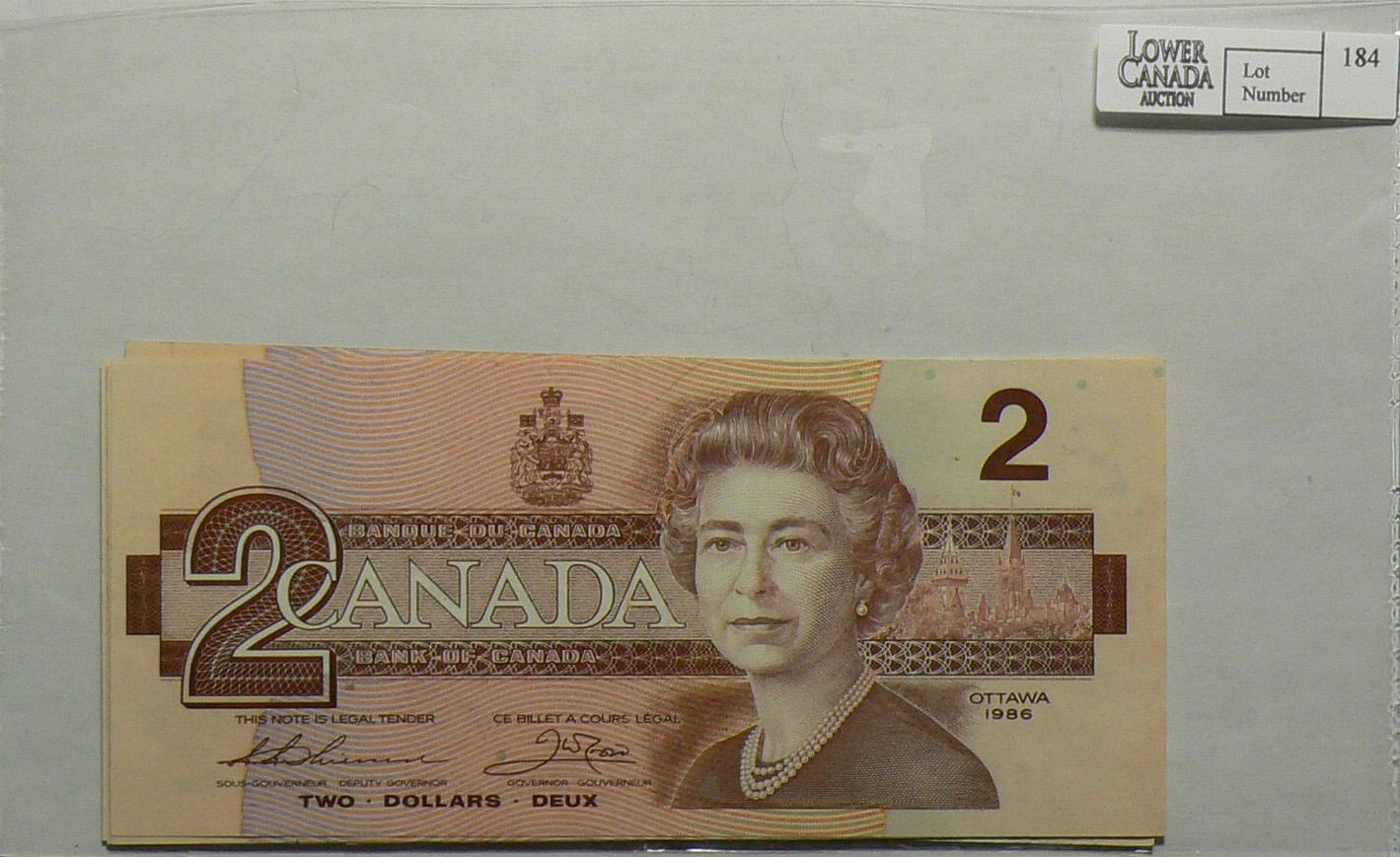 1986 Two Dollars Replacement, BC-55bA, VF to UNC x 5, Thiessen Crow, serial BRX0238065, BRX064250