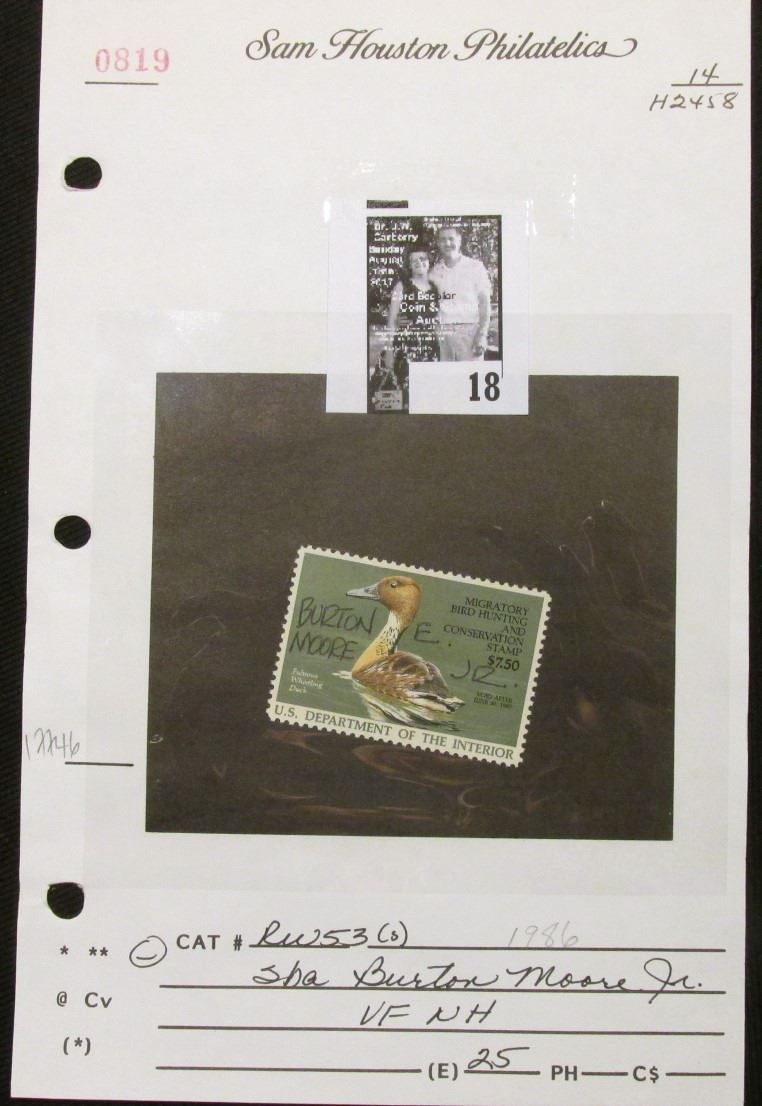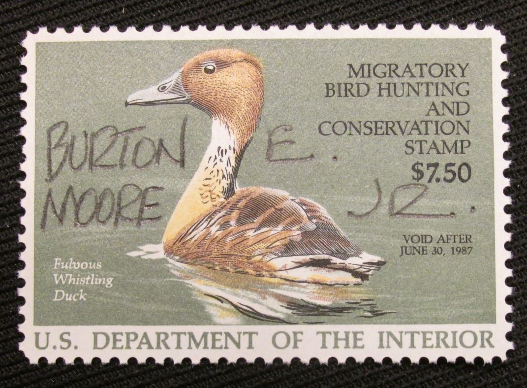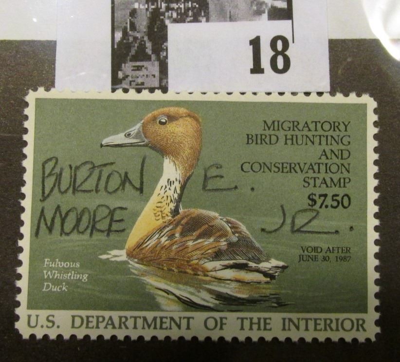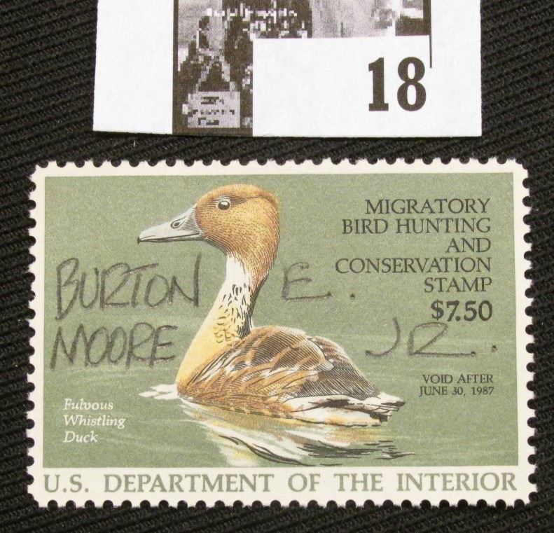 1986 U.S. Department of the Interior Migratory Bird Hunting Stamp, RW#53, OG, not hinged, VF, Signed by the Artist "Burton E. Moore Jr.".