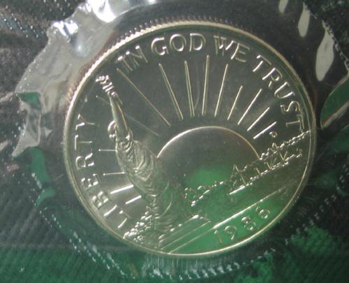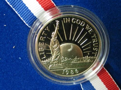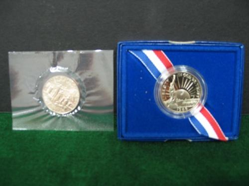 1986 U.S. LIBERTY HALF DOLLAR COINS. Statue of Liberty. Consists of one Unc. coin and one proof coin. Both have boxes.