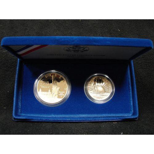 1986 U.S. LIBERTY PROOF SET. Consists of half & silver dollar. In case & box.
