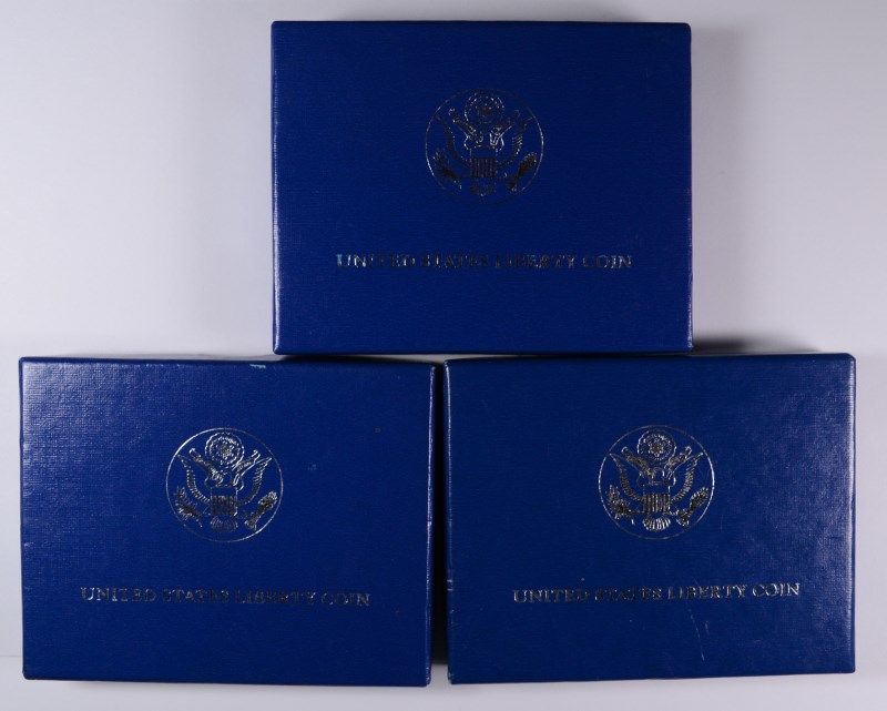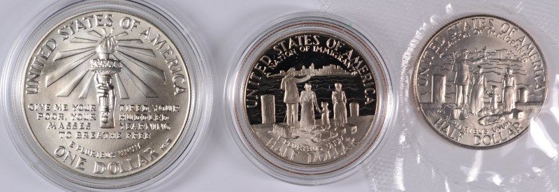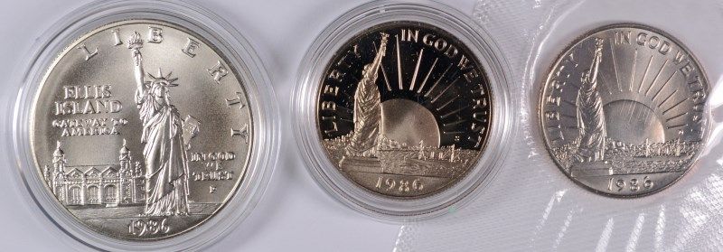 1986 UNC. LIBERTY COMMEM DOLLAR, ALSO A 1986 LIBERTY PROOF AND UNC HALF DOLLARS