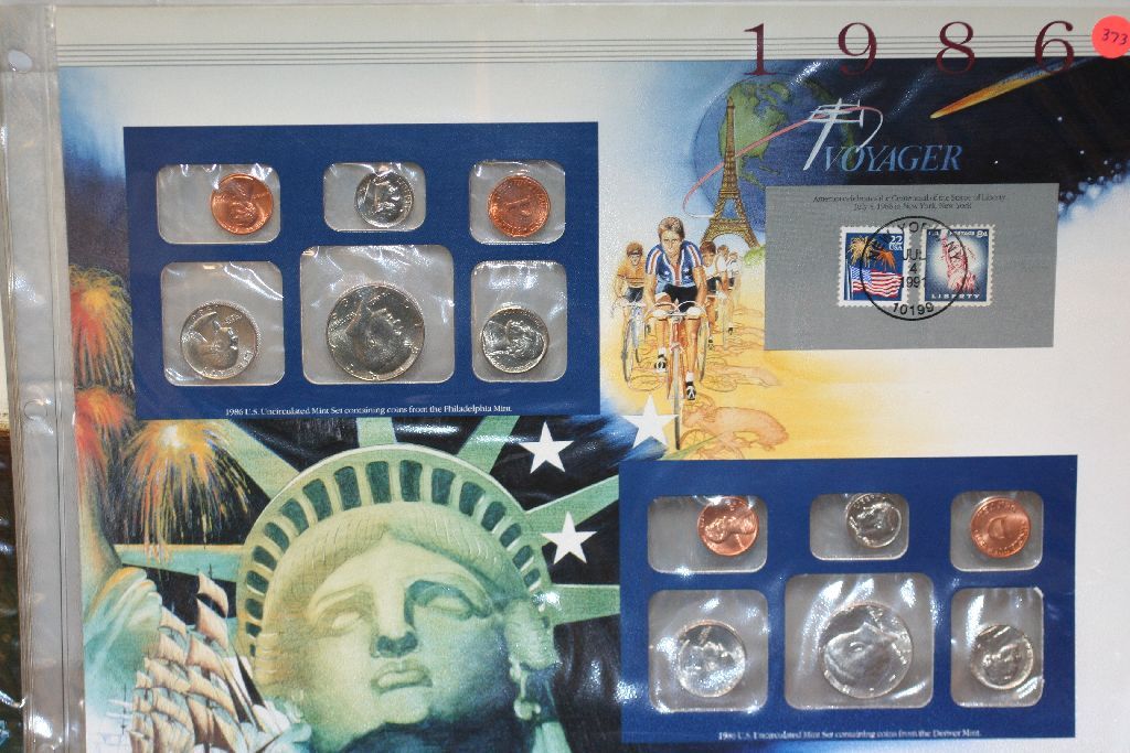 1986 US Mint Coin Set Commerating Centennial of the Statue of Liberty; P&D Mints, UNC W/Postal Stamps Dated 1991
