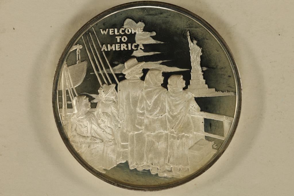 CENTENNIAL, .91 OZ. ASW, "WELCOME TO AMERICA" IN HARD PLASTIC CAPSULE. DESIGNED BY CHIEF ENGRAVER FRANK GASPARRO