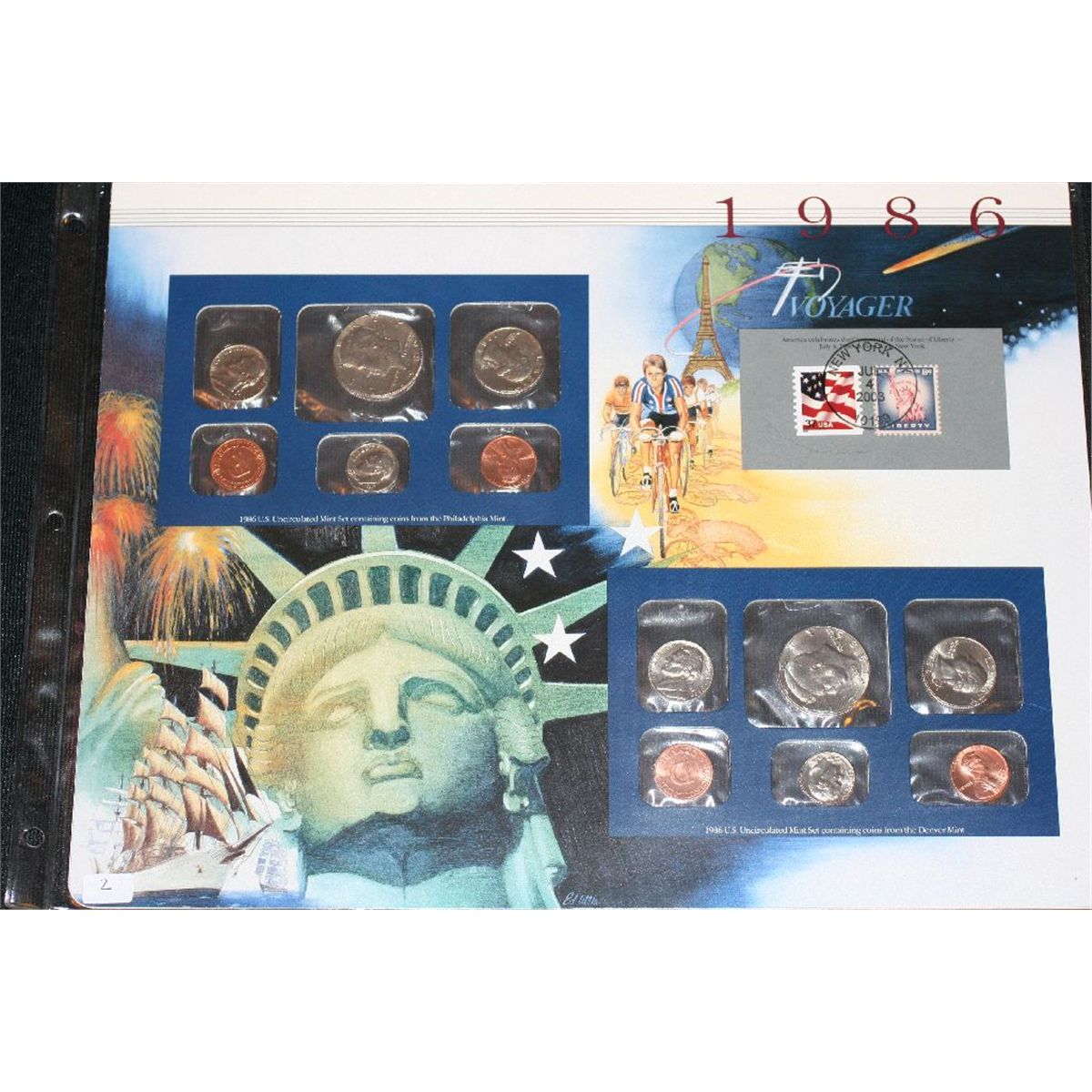 1986 US Uncirculated Mint Set from Philadelphia & Denver Panel with Stamp