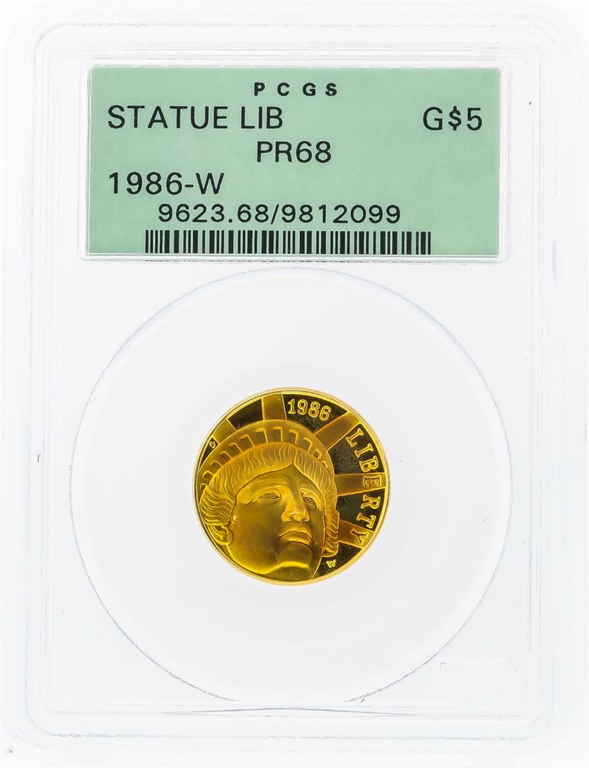 One 1986-W $5 Statue of Liberty Commemorative Gold Coin PCGS PR68. PCGS Graded.