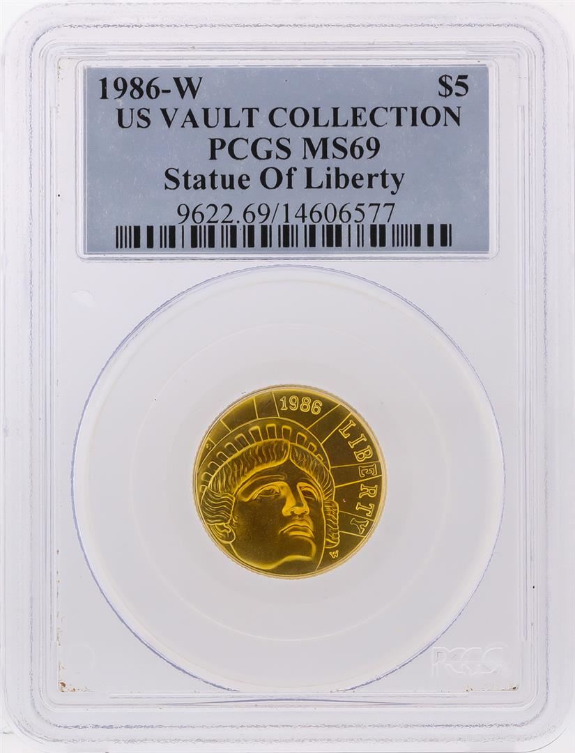 One 1986-W $5 US Vault Collection Statue of Liberty Gold Coin PCGS MS69. PCGS Graded.