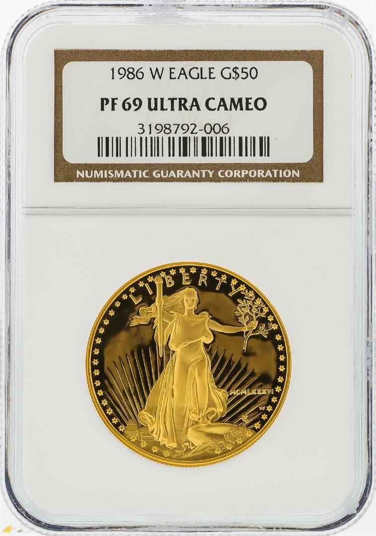 One 1986-W $50 American Gold Eagle Coin NGC Graded PF69 Ultra Cameo. NGC Certified.