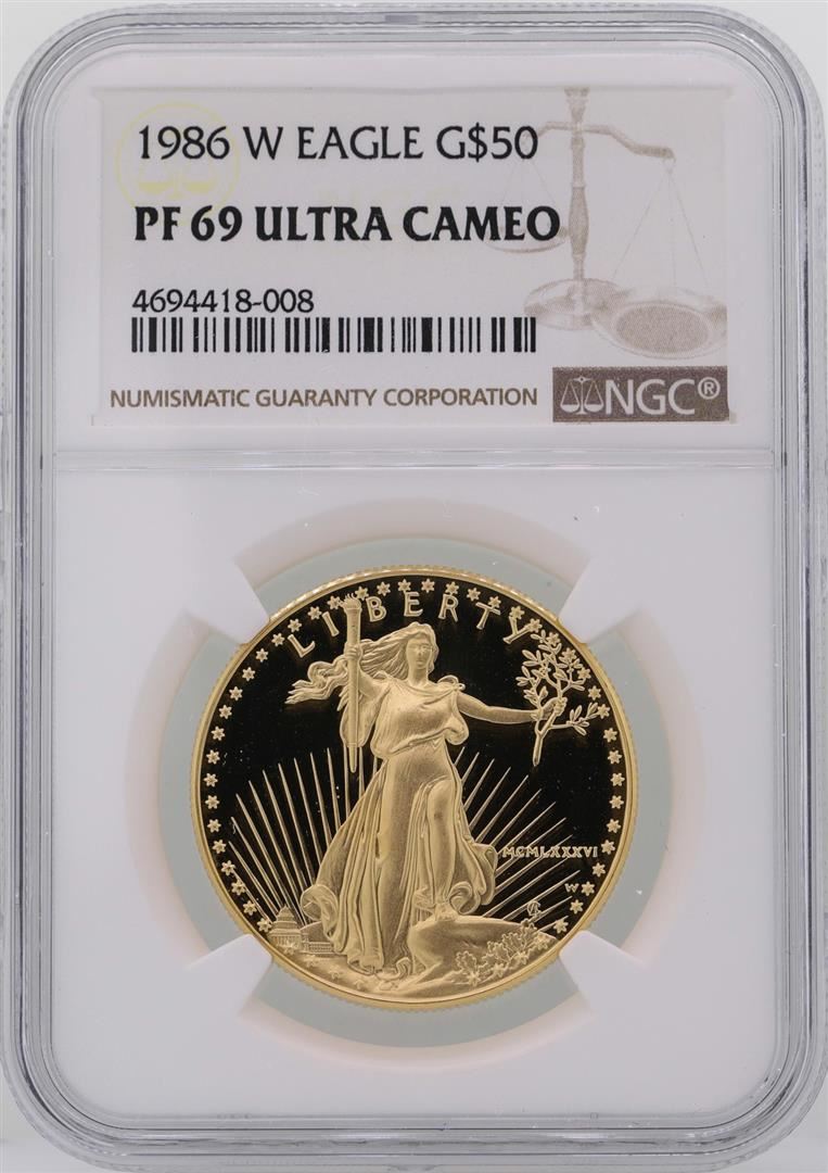 One 1986-W $50 American Gold Eagle Coin NGC PF69 Ultra Cameo. NGC Certified.