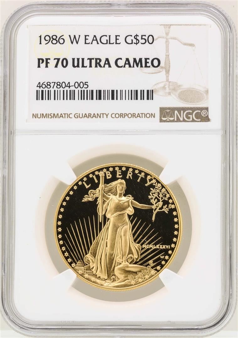 One 1986-W $50 American Gold Eagle Coin NGC PF70 Ultra Cameo. NGC Certified.