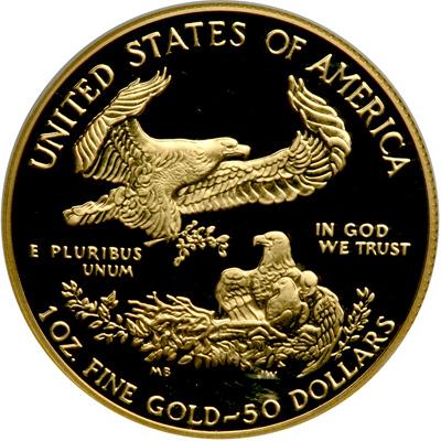 1986-W $50 Gold Eagle. NGC graded Proof 70 Ultra Cameo. A perfect coin, ideal for a top quality Registry Set (PCGS # 9807) .