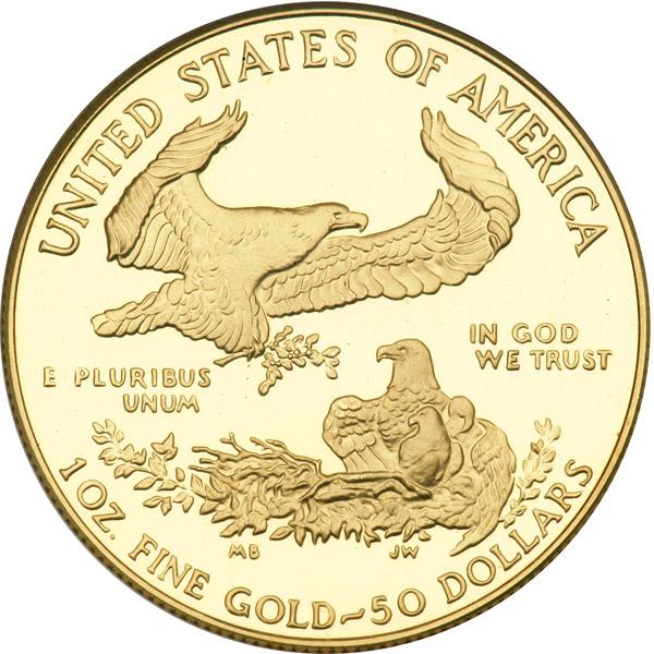 1986-W $50 Gold Eagle, 1 oz. NGC graded Proof 69 Ultra Cameo (PCGS # 9807) .