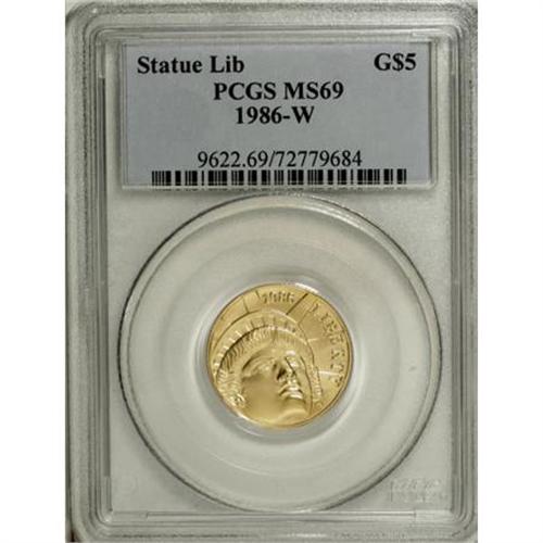 1986-W G$5 Statue of Liberty Gold Five Dollar MS69 PCG