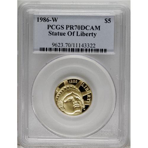 1986-W G$5 Statue of Liberty Gold Five Dollar PR70 Dee