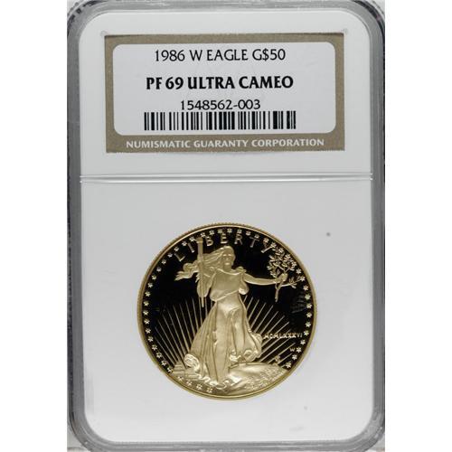 1986-W G$50 One-Ounce Gold Eagle PR69 Deep Cameo NGC