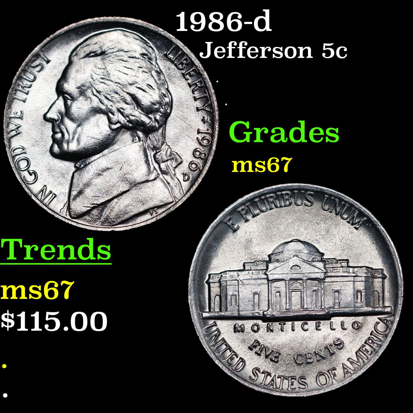 1986-d Jefferson Nickel 5c Grades GEM++ Unc.