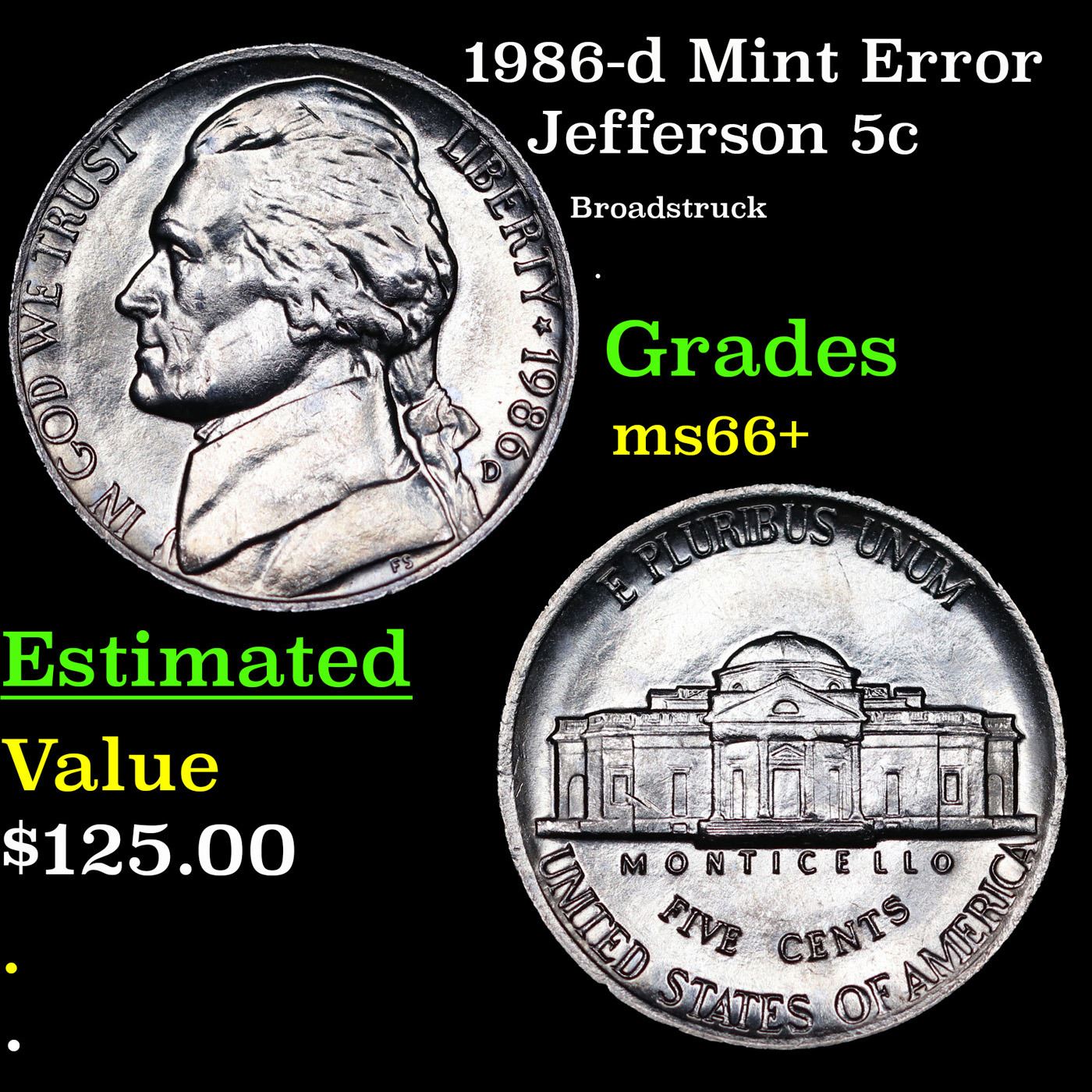 1986-d Mint Error Jefferson Nickel 5c Grades GEM++ Unc.