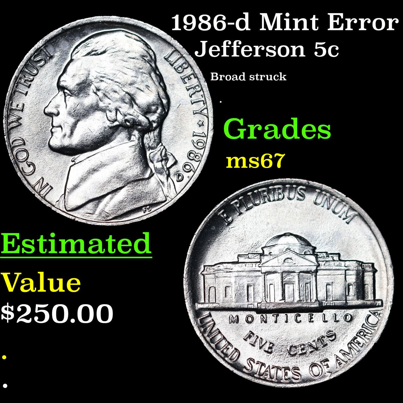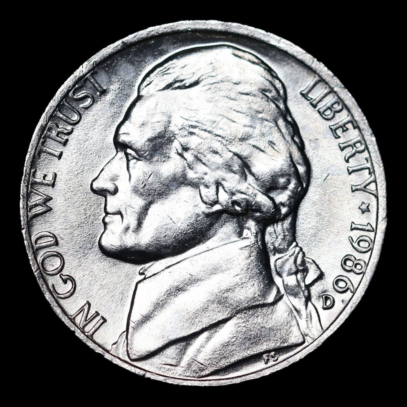 1986-d Mint Error Jefferson Nickel 5c Grades GEM++ Unc.