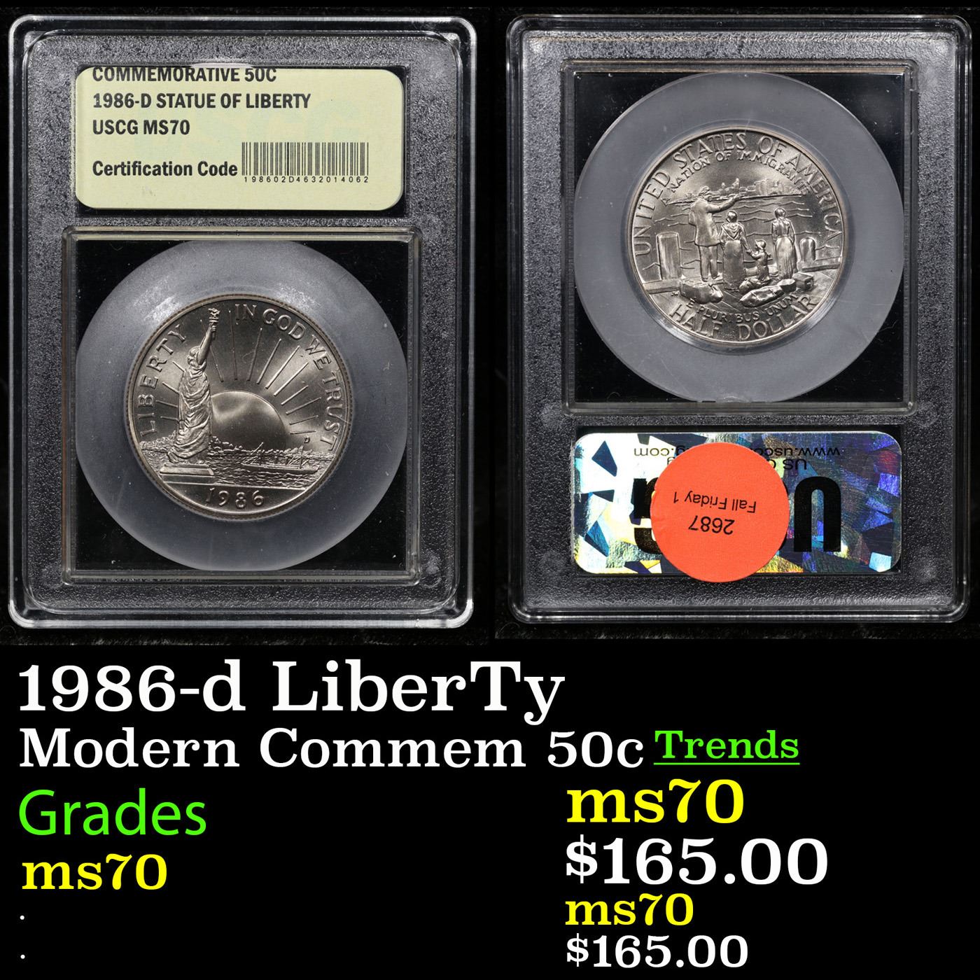 1986-d LiberTy Modern Commem Half Dollar 50c Graded ms70, Perfection By USCG.