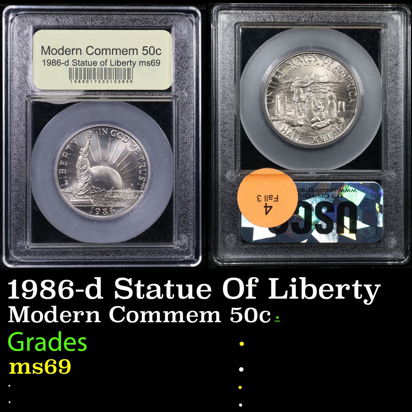 1986-d Statue Of Liberty Modern Commem Half Dollar 50c Graded GEM+++ Unc By USCG.