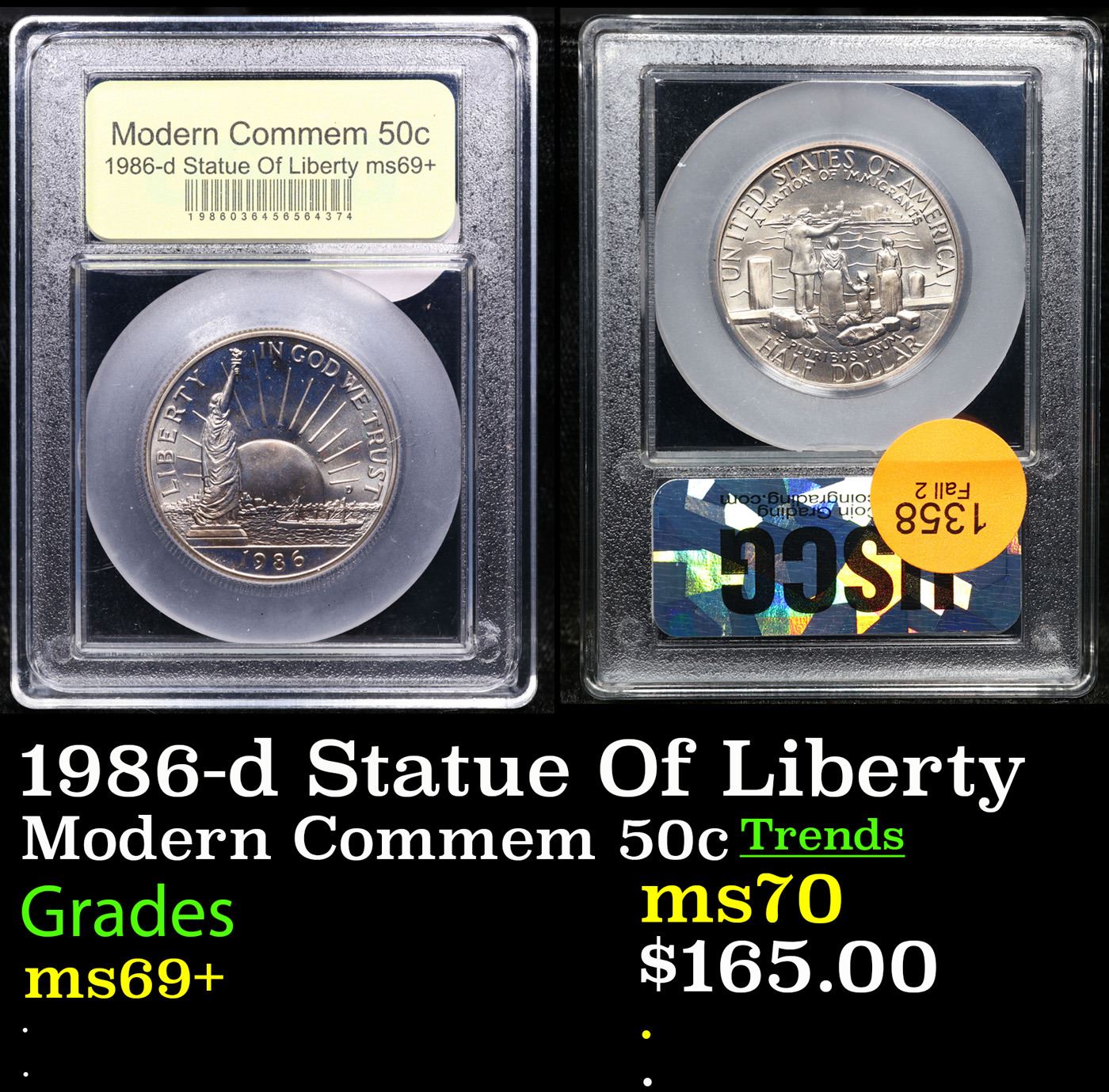1986-d Statue Of Liberty Modern Commem Half Dollar 50c Graded ms69+ By USCG.