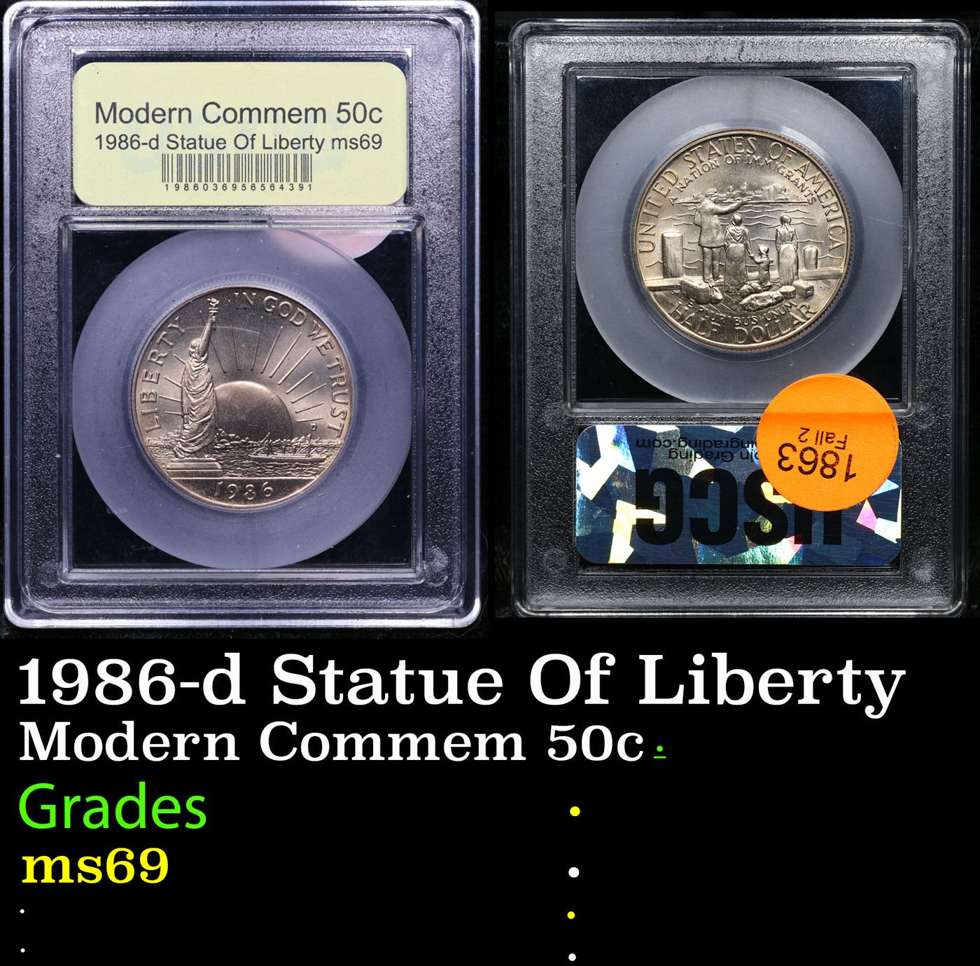 1986-d Statue Of Liberty Modern Commem Half Dollar 50c Graded ms69 By USCG.