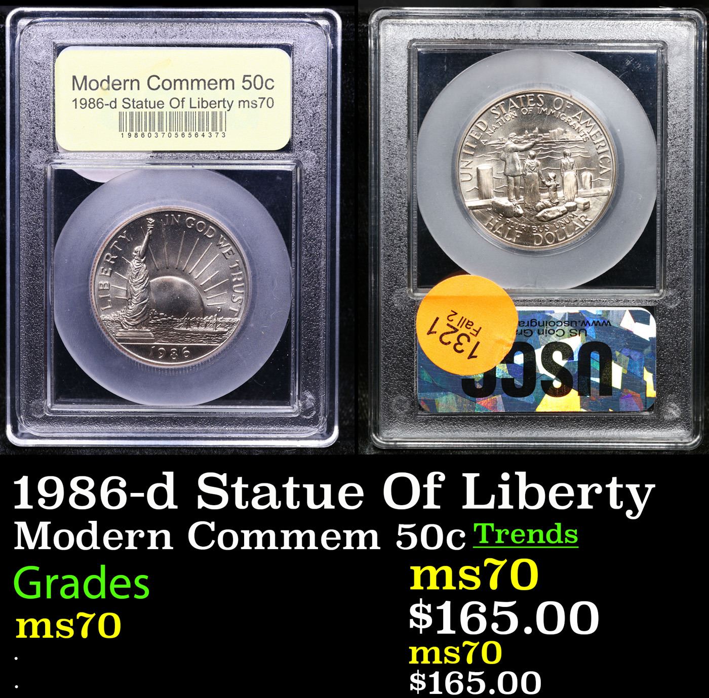 1986-d Statue Of Liberty Modern Commem Half Dollar 50c Graded ms70, Perfection By USCG.