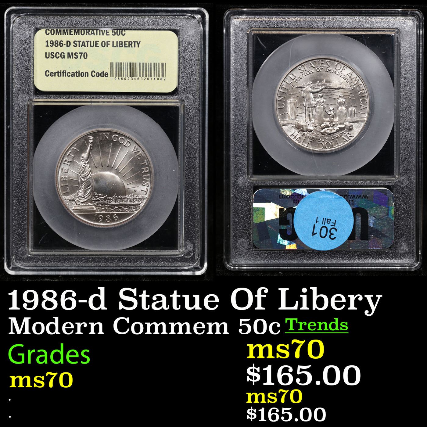 1986-d Statue of Liberty Modern Commem Half Dollar 50c Graded ms70, Perfection By USCG