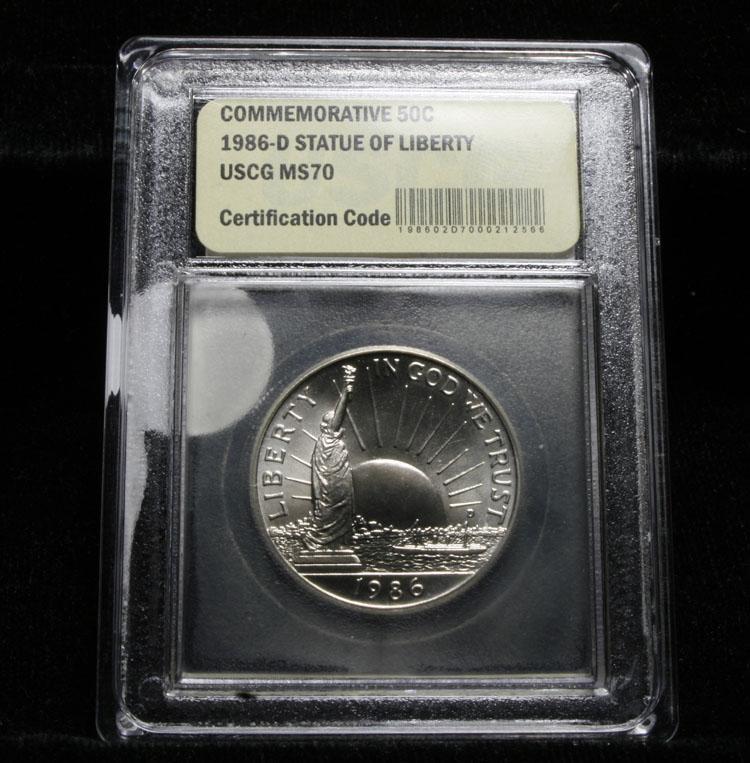 The 1986 Statue of Liberty Commemorative Half Dollar was one of three commemorative coins issued to celebrate the 100th anniversary of the dedication of the Statue of Liberty. PCGS lists ms70 at $3300. This coin is graded perfection ms70 by USCG. Estimated Value $400