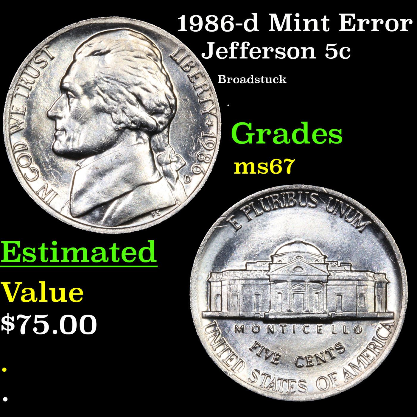1986-p Mint Error Jefferson Nickel 5c Grades GEM++ Unc.