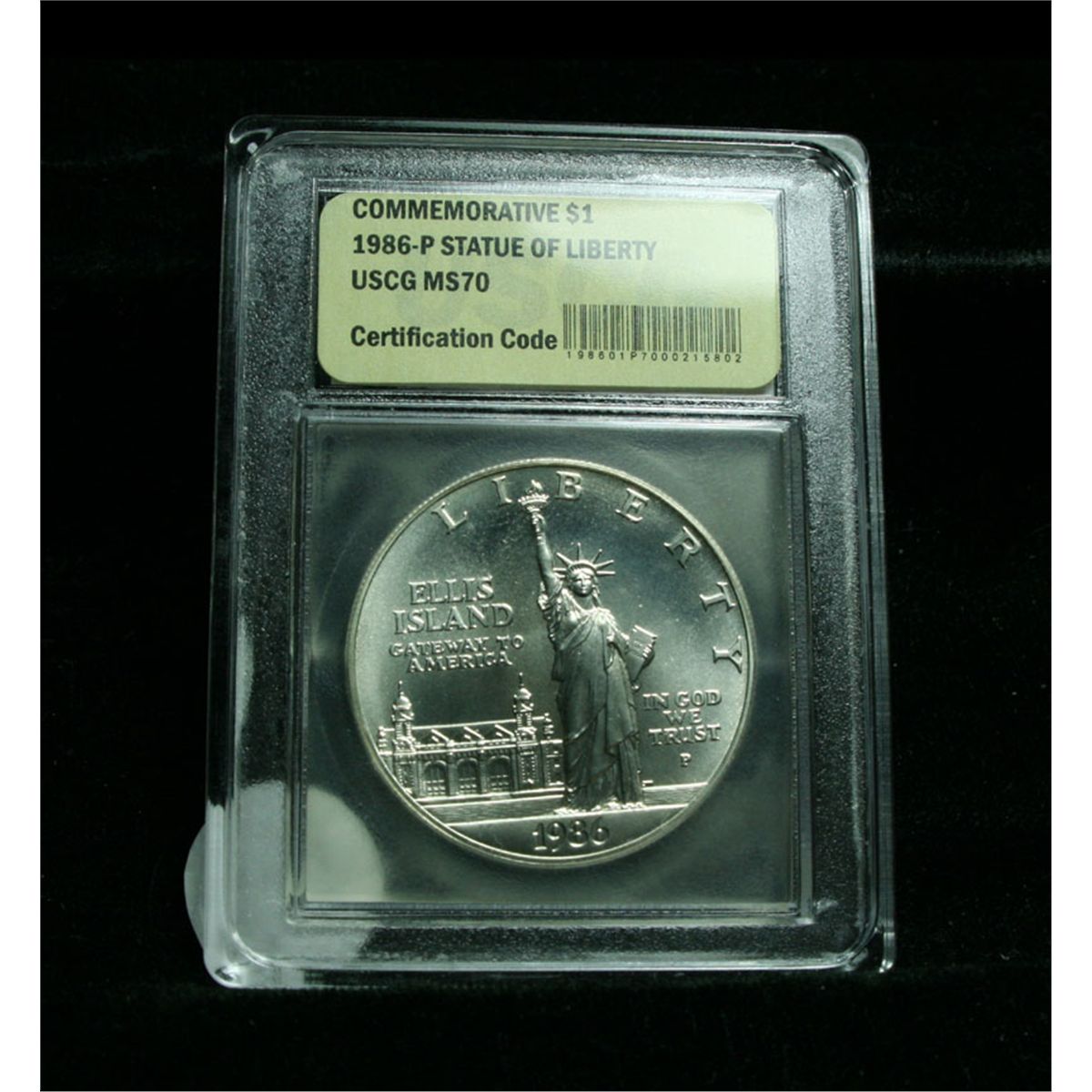 This Statue of Liberty commemorative which pays homage to Ellis Island. PCGS Price Guide lists ms70 at $625. This example is Graded a Perfect ms70 by USCG. Estimated Value $250.