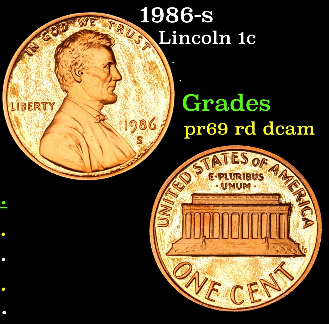 1986-s . . Lincoln Cent 1c Grades Gem++ Proof Red Deep cameo.