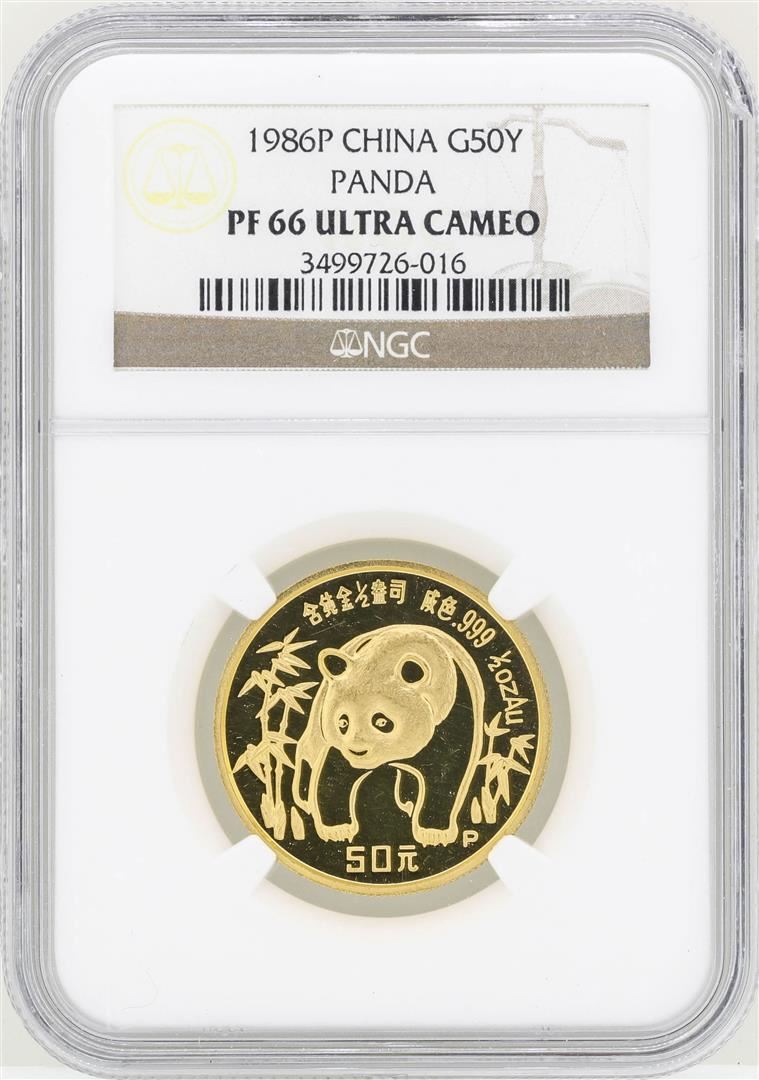 One 1986P China 50 Yuan Gold Panda Coin NGC PF66 Ultra Cameo. NGC Certified.