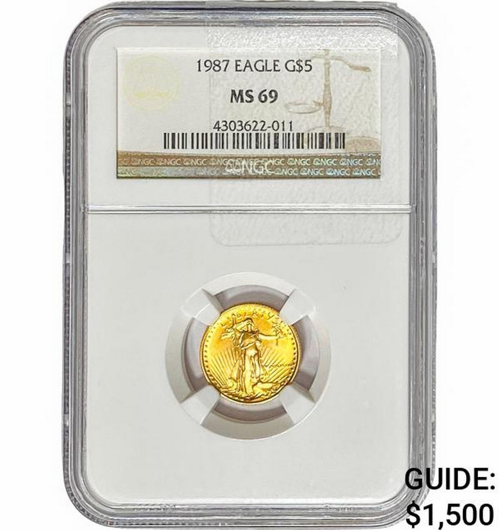 1987 1/10oz $5 Gold Eagle NGC MS69