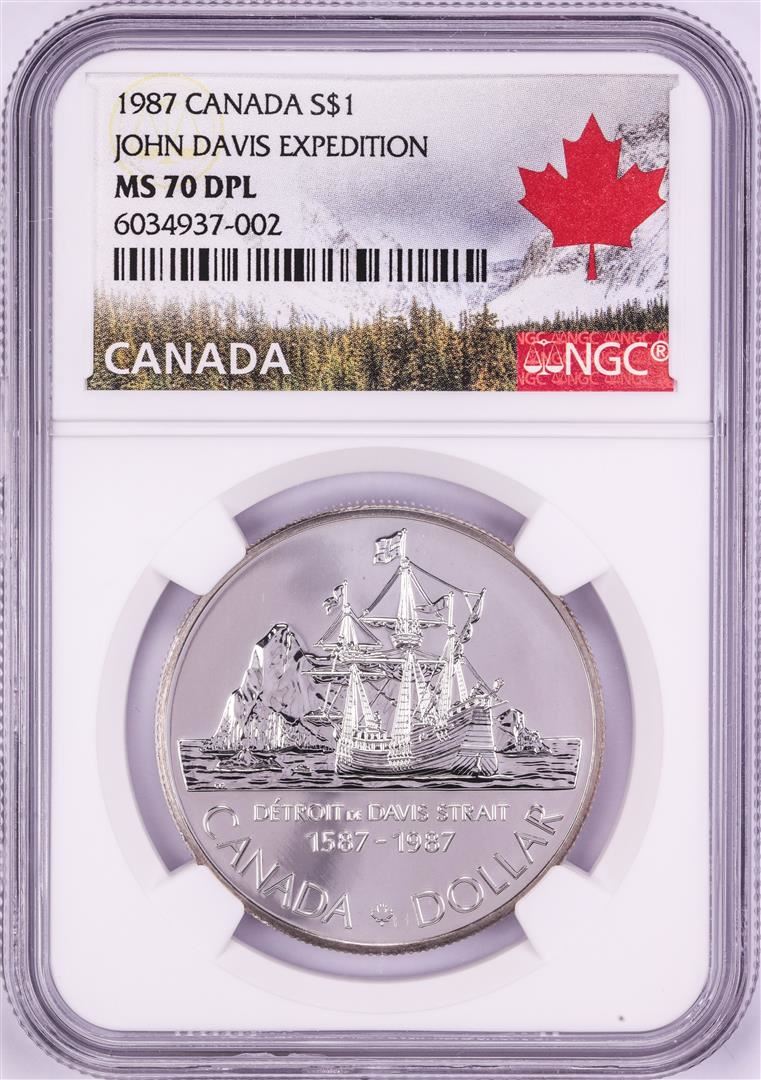One 1987 $1 Canada John Davis Expedition Silver Dollar Coin NGC MS70 DPL. NGC Certified.