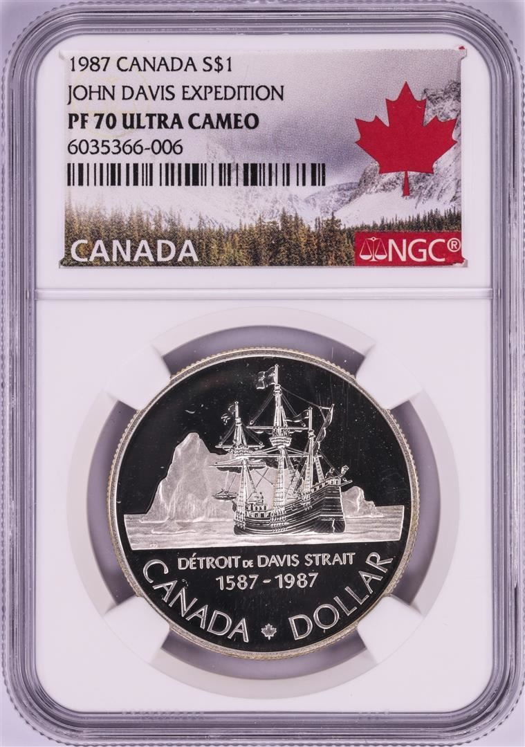 1987 $1 Canada Proof John Davis Expedition Silver Dollar Coin NGC PF 70 Ultra Cameo