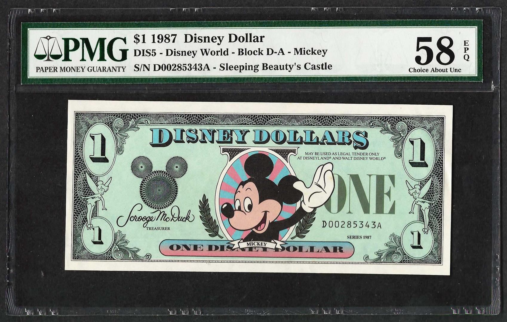 1987 $1 Disney Dollars Note PMG Choice About Uncirculated 58EPQ