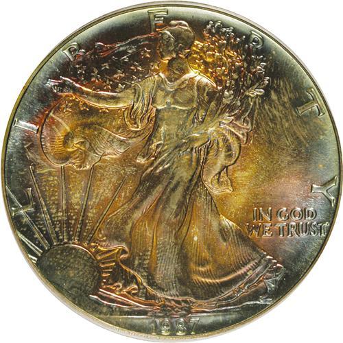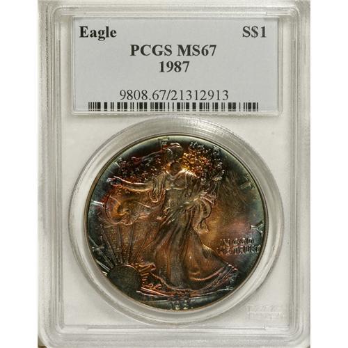 1987 $1 Silver Eagle MS67 PCGS. PCGS Population (1