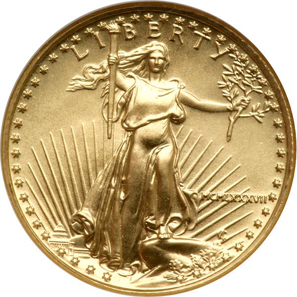 1987 $10 ¼ oz Gold Eagle. NGC graded MS-70 (PCGS # 9811) .