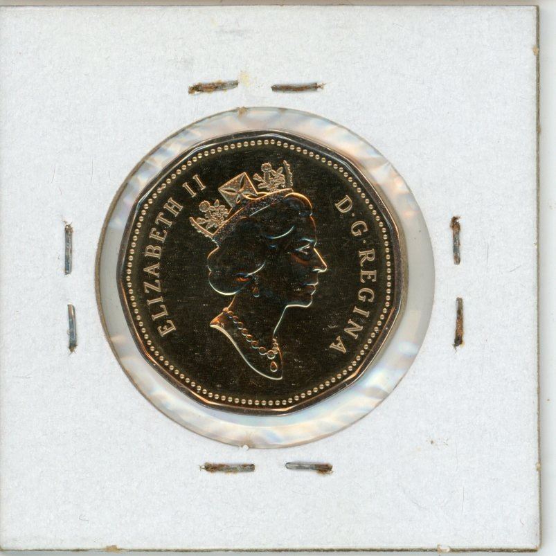 1987 – 1997 Flying Loonie. 10th Anniversary of the first loonie. Specimen. Only available in the Specimen Set. Scarce.