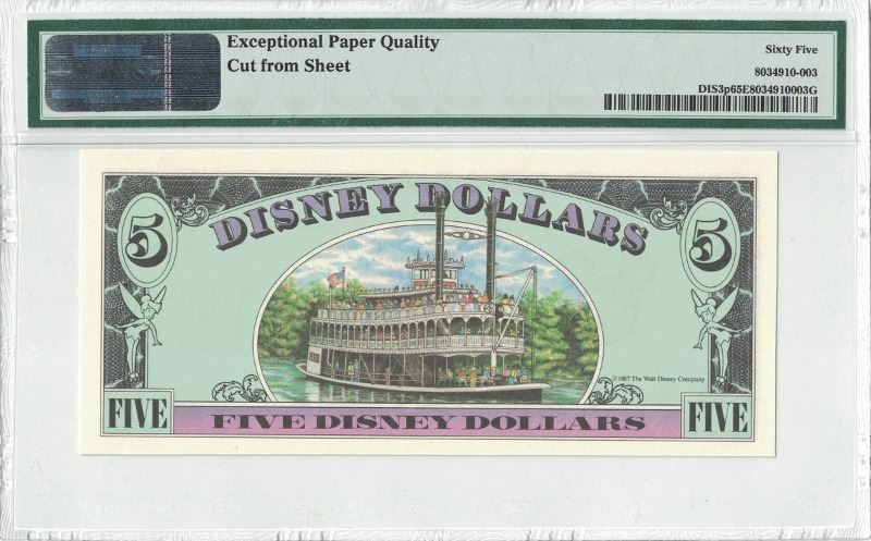 One 1987 $5 Goofy Proof Disney Dollar PMG 65EPQ.