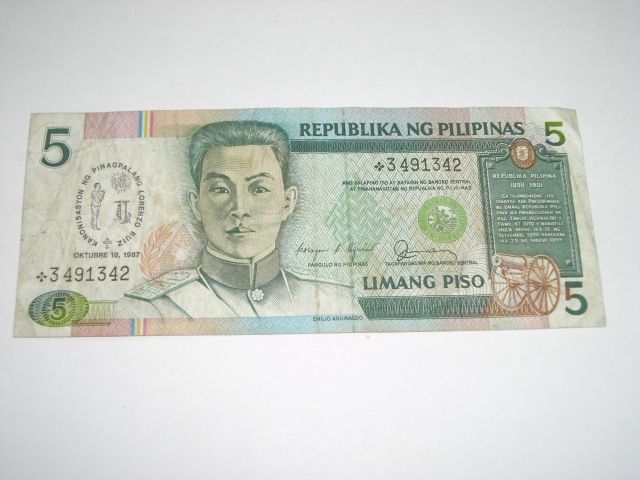 1987 5 LIMANG PISO *PHILIPPINES - REPUBLIKA NG PHILIPINAS*!! ***Coin, Currency & All Items Listed in this auction - Grades, Conditions and Values are not Safe Deposit Coins LLC Responsibilty. Grades, Condition and Values are determined by Consigner(s) & Buyers ONLY***