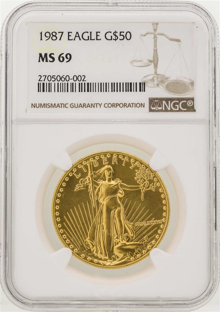 One 1987 $50 American Gold Eagle Coin NGC MS69. NGC Certified.