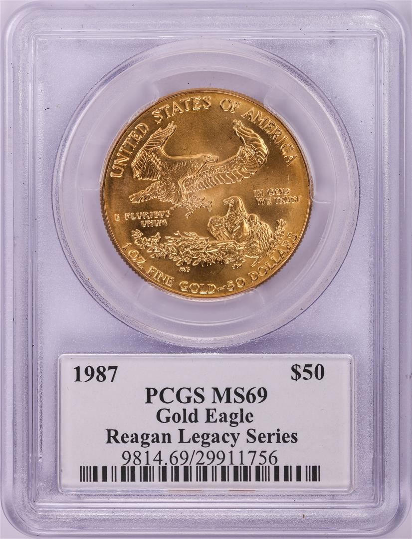 One 1987 $50 American Gold Eagle Coin PCGS MS69 Michael Reagan Signature. PCGS Graded.