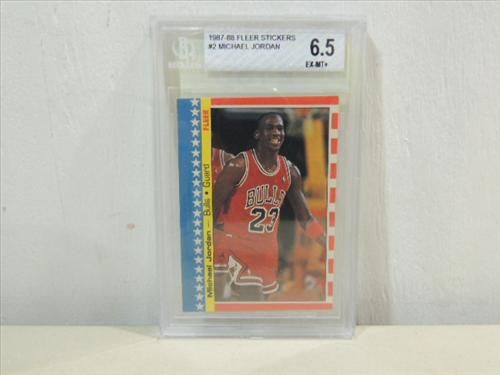 1987-88 FLEER #2 GRADED BASKETBALL CARD MICHAEL JORDAN. GRADED BY BECKETT EX-MT 6.5. AS SHOWN. VIEW PICTURE FOR DETAIL.