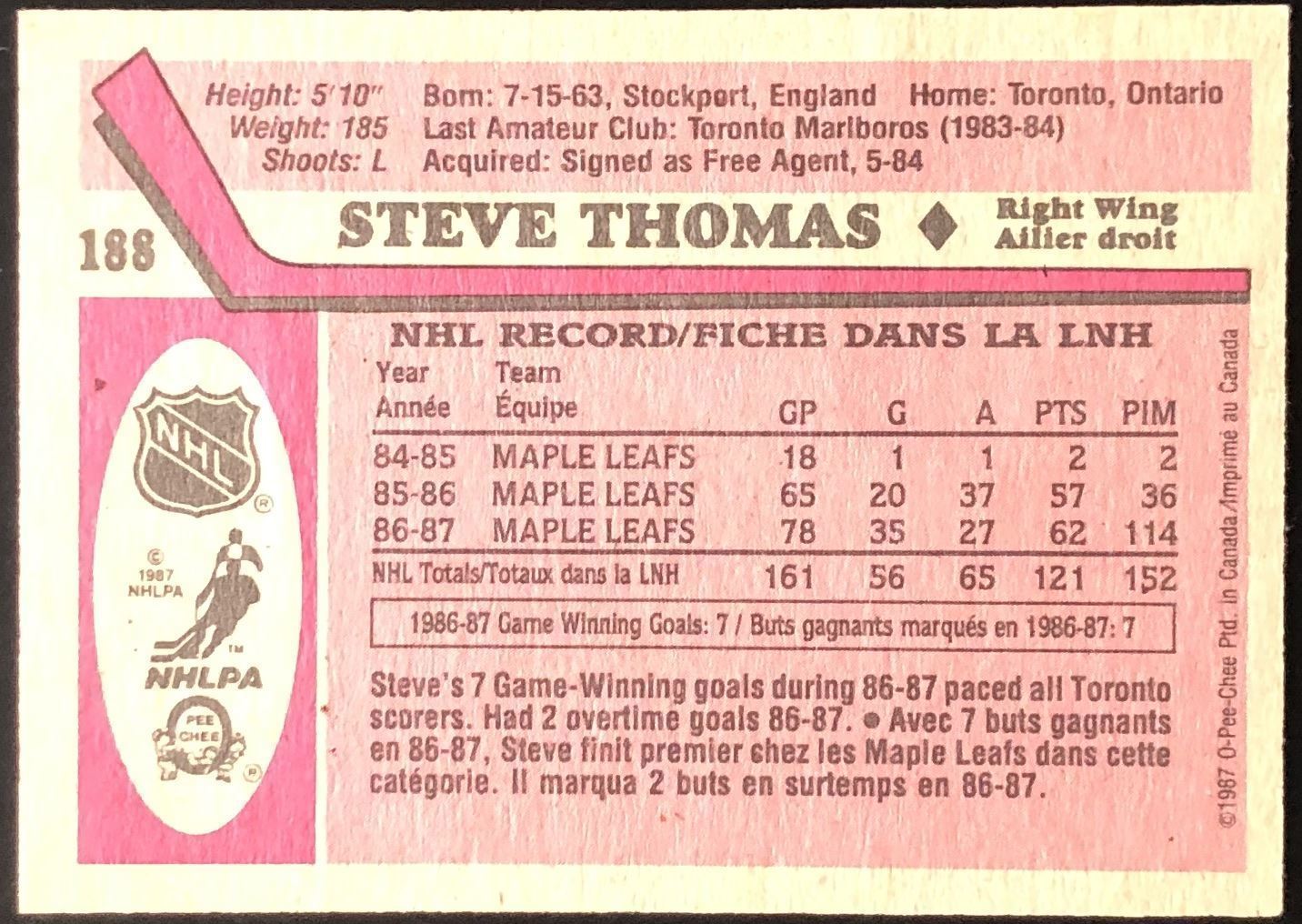 Card #188 NHL, hockey, vintage, OPC, hall of fame