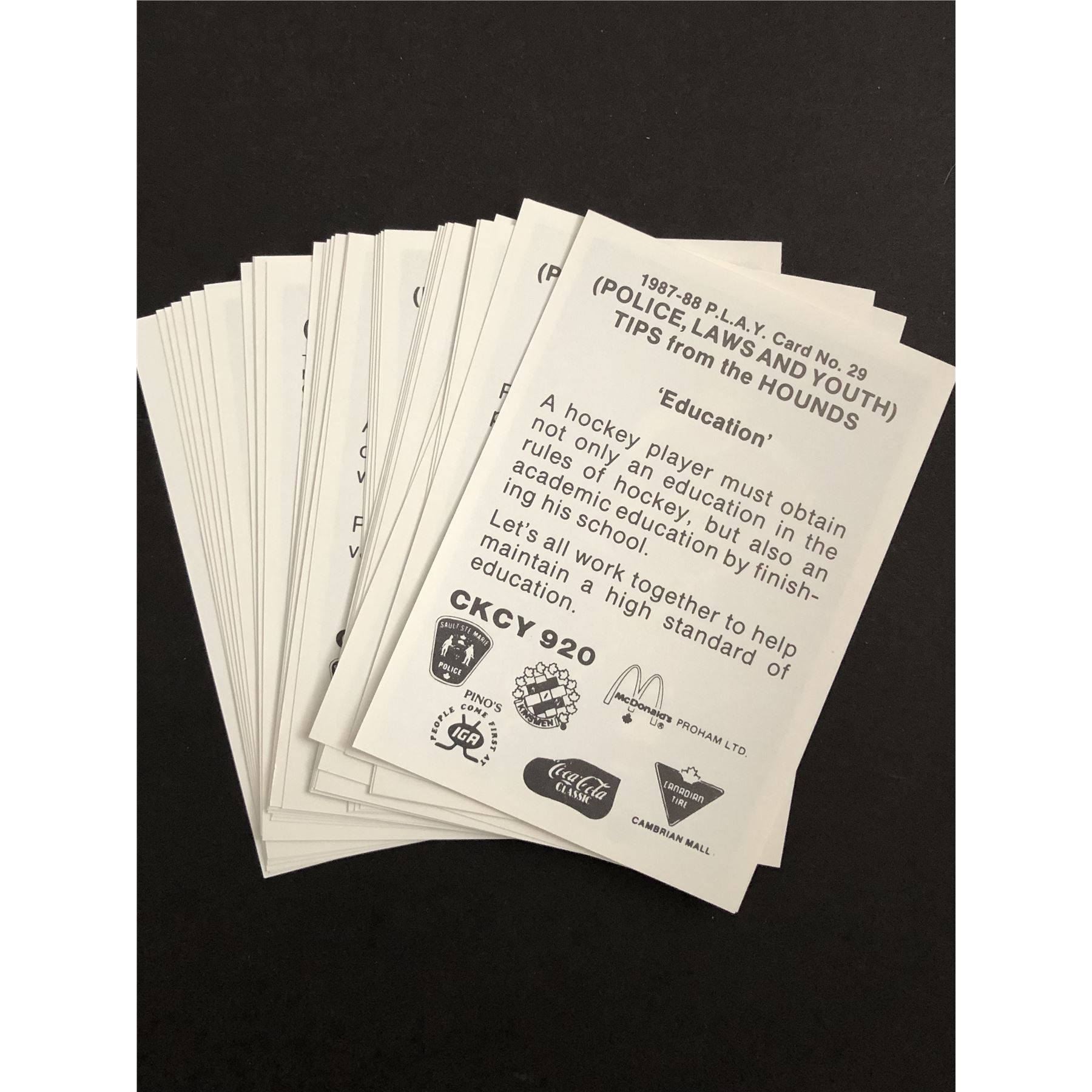 '88-89 30 card set issued by Sault Ste. Marie police officers; features future NHL stars Wayne Gretzky (HOF), Craig Hartsburg & Ron Francis (HOF).