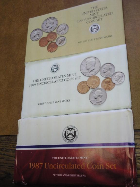 1987, 89 & 90 US MINT SETS (UNC) P/D, 3 SETS