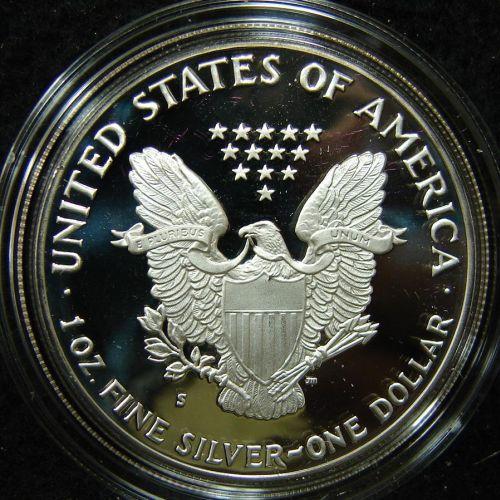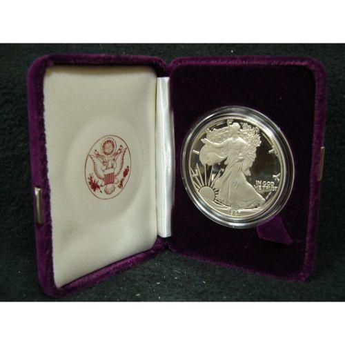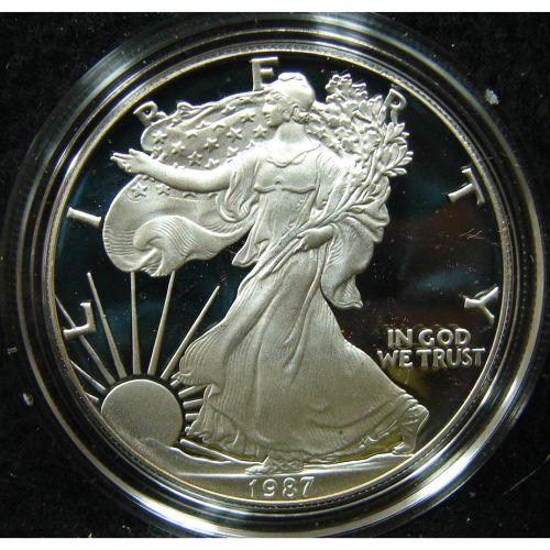 1987 AMERICAN EAGLE SILVER DOLLAR. Proof. Has case and box.